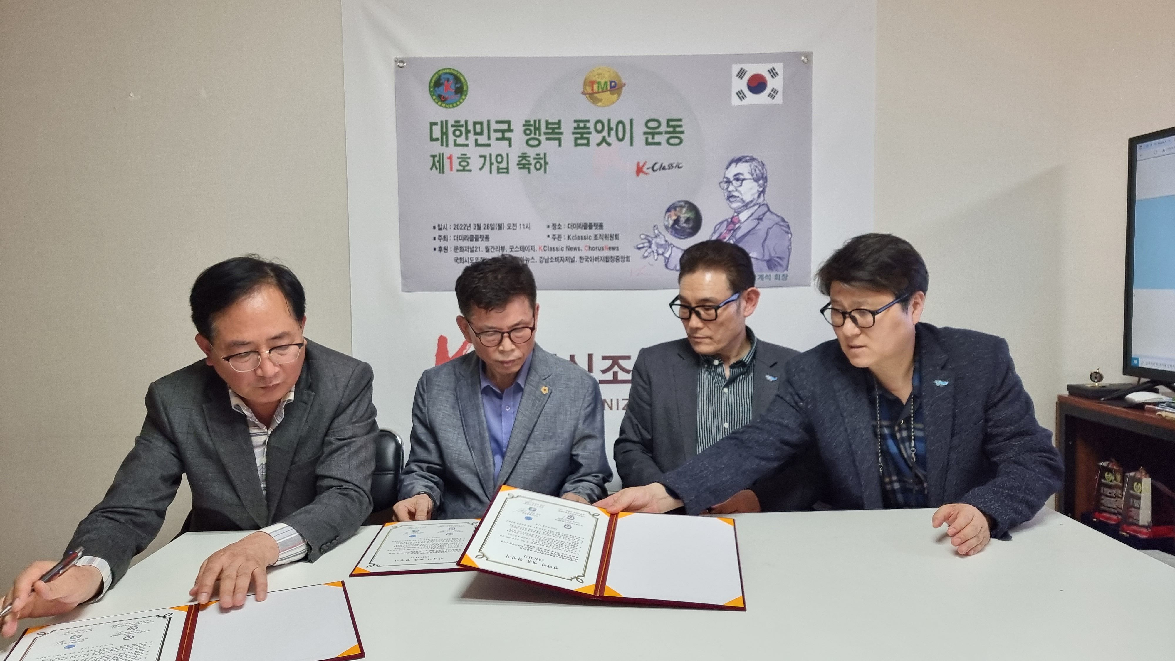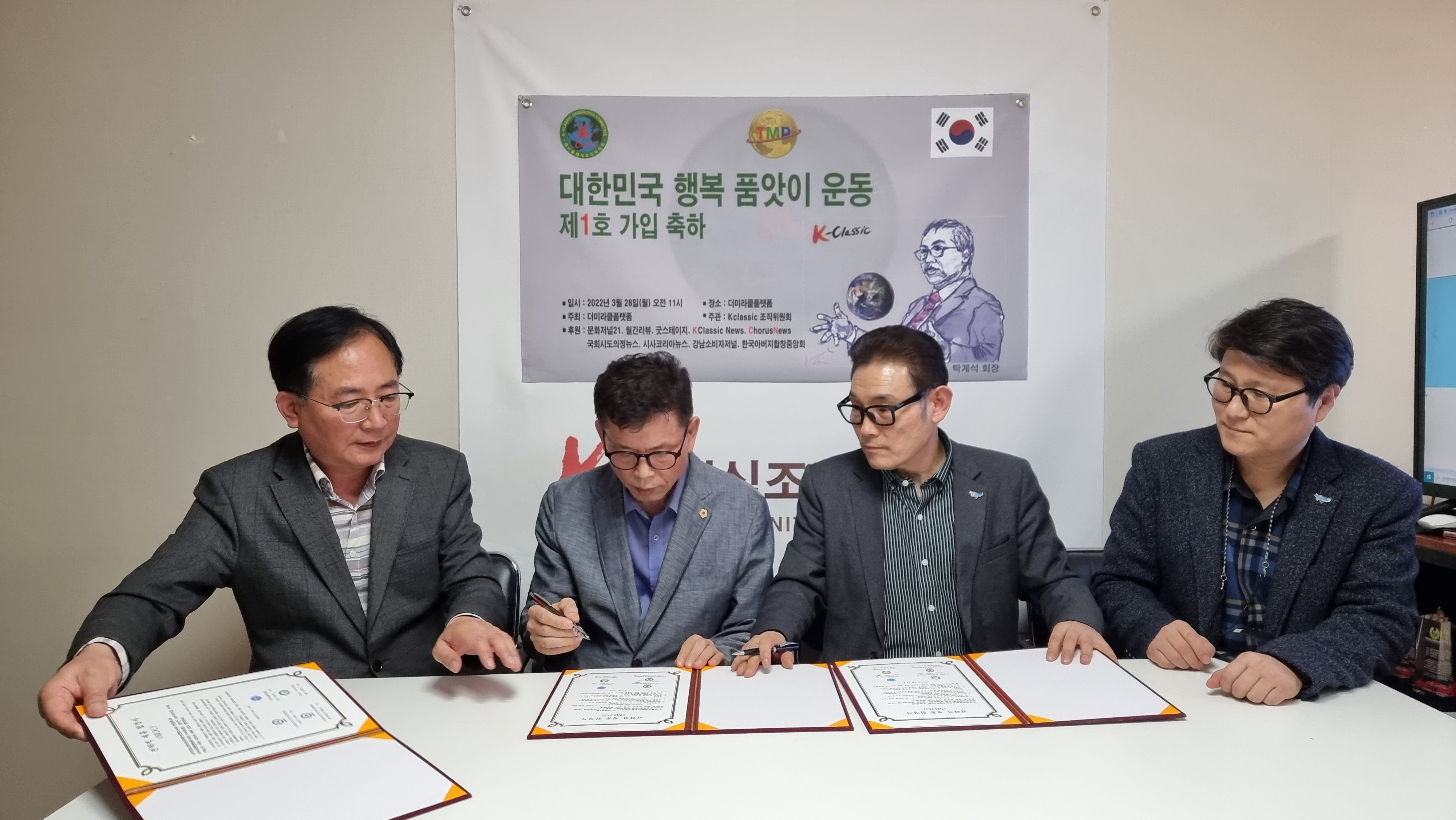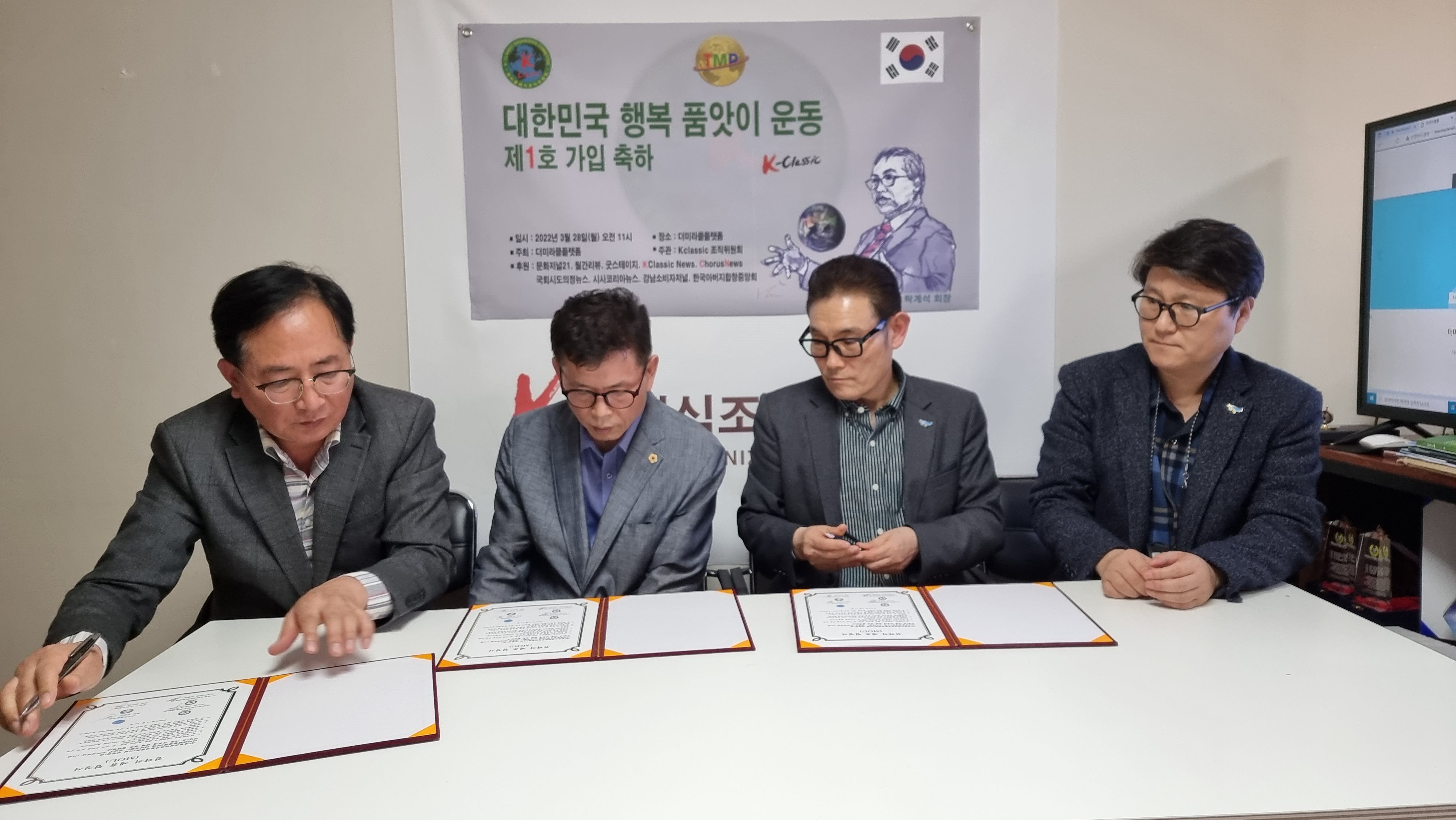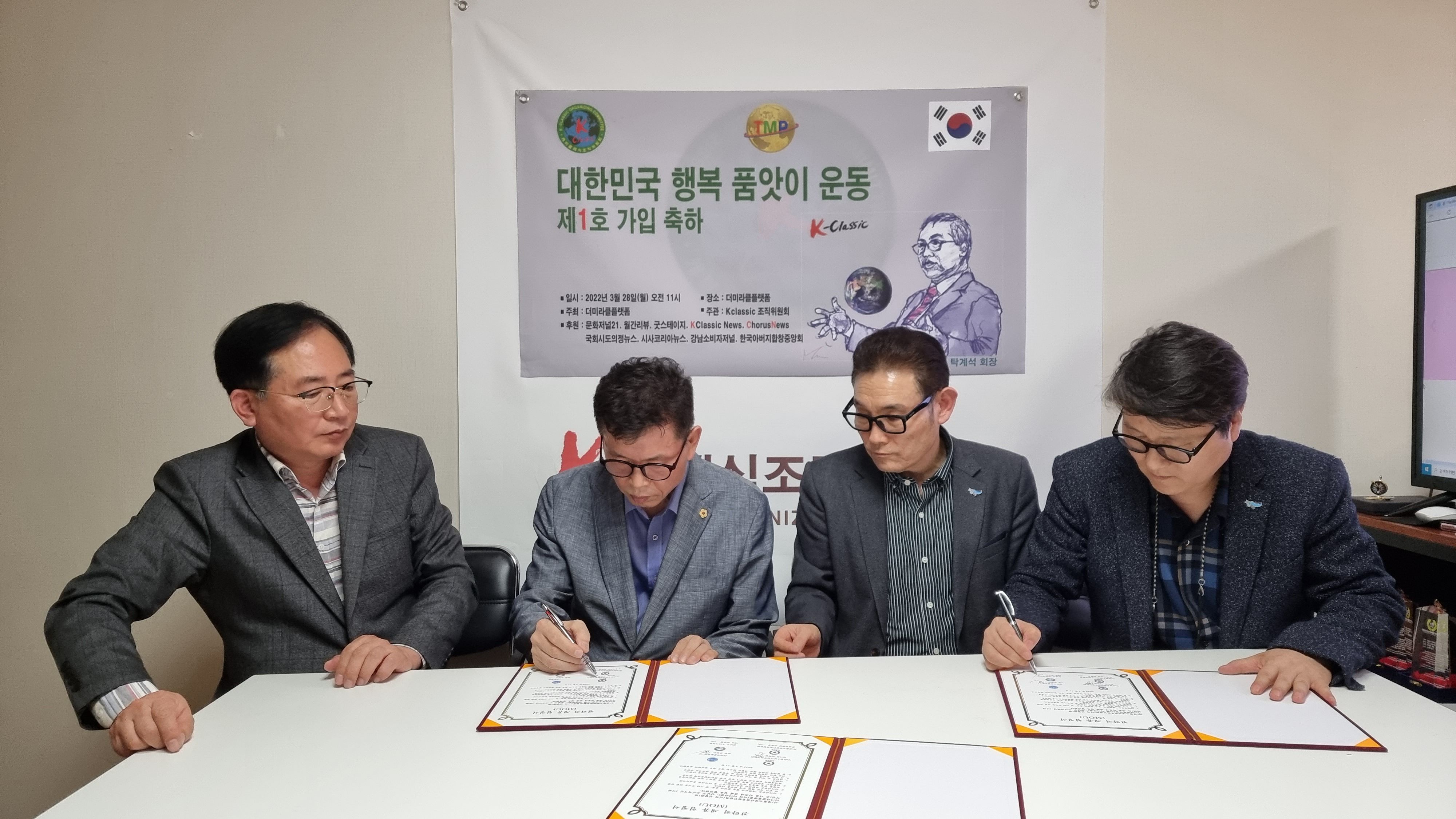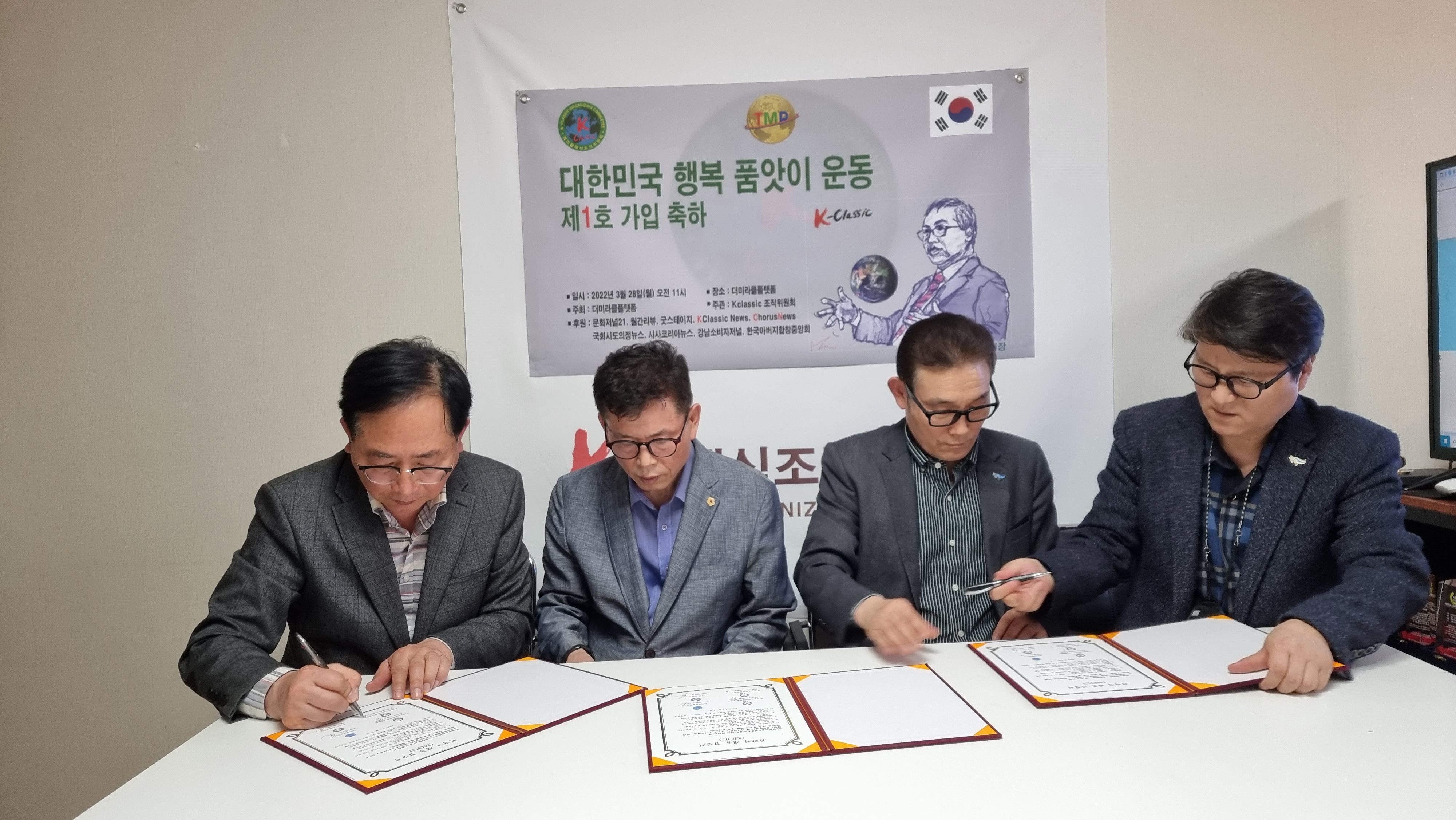 대한민국 행복 품앗이 운동을 추진하고 있는 더미라클플랫폼(회장 유원진)은 04월 11일 (사)경찰소방안전후원연합회(이사장 이학영)와 강남구 소비자저널(대표 김은정)과 다자간 업무협약식을 체결하고 사인했다.